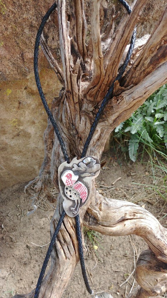A client found a lovely piece of Mimbreño china near Cañoncito and I made it into a bolo tie for him, set in sterling.
