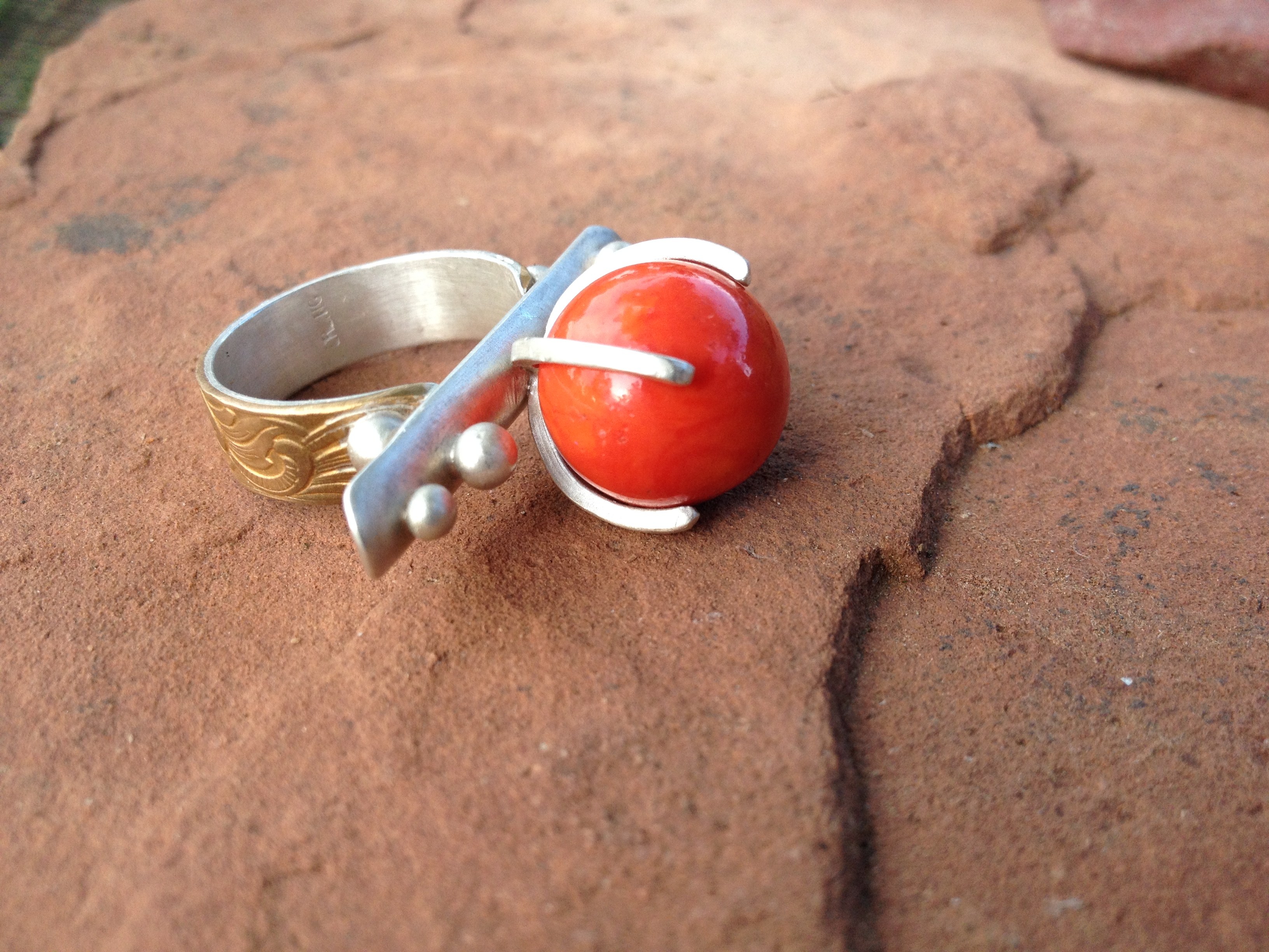 Previous Image Next Image Balanced, sterling silver, red brass, old marble, size 8. $82. Balanced, sterling silver, red brass, old marble, size 8. $82.