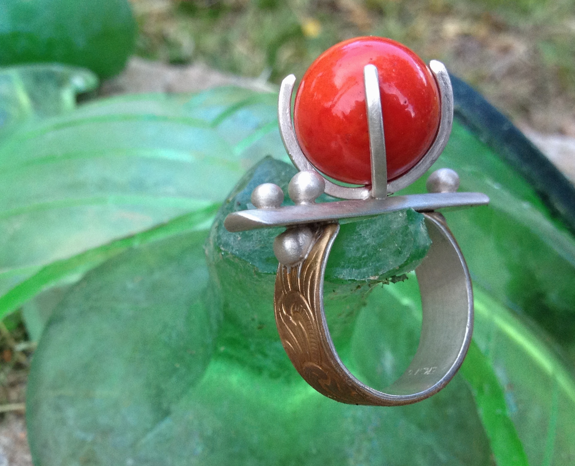 Balanced- sterling silver, red brass, old marble, size 8.