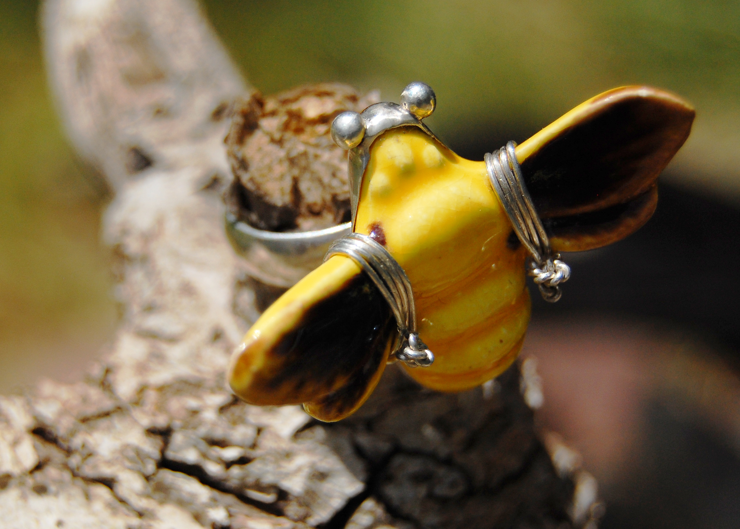 Ceramic Bee Ring, sterling silver, glazed ceramic, copper
