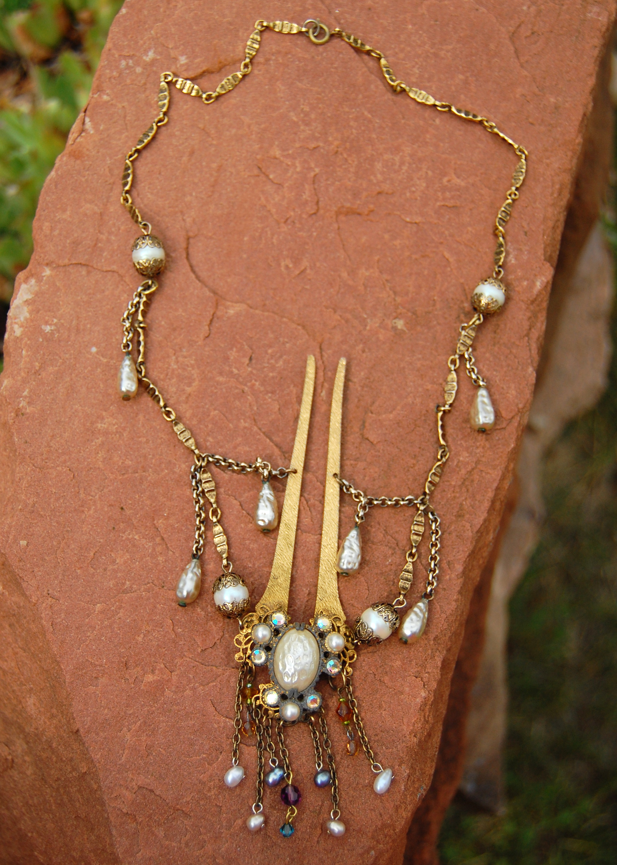 Coiffed Necklace- vintage hair pin, parts from vintage necklaces, SOLD.