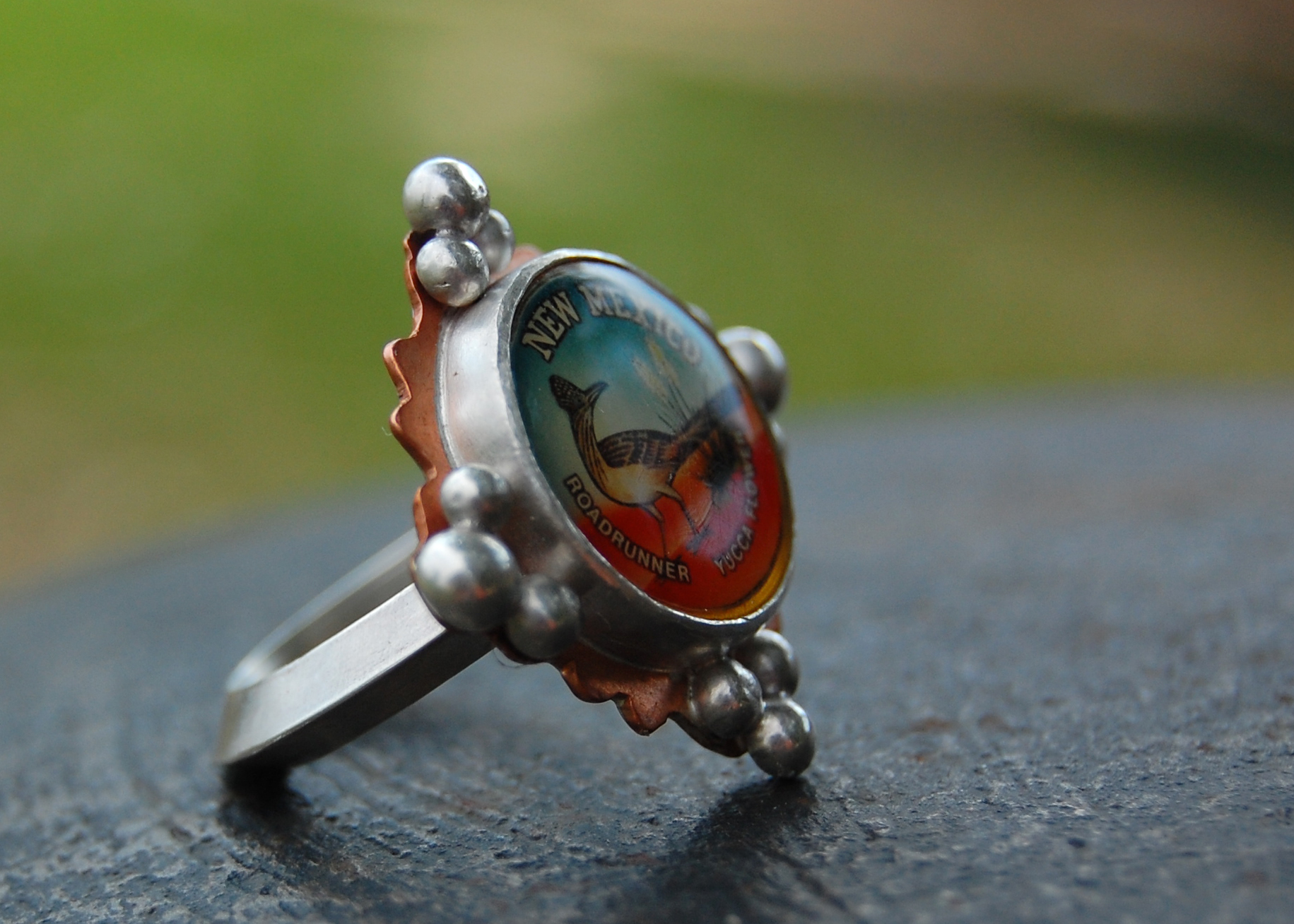 “Oh Fair New Mexico”- sterling silver, copper, vintage tourista pin. SOLD.