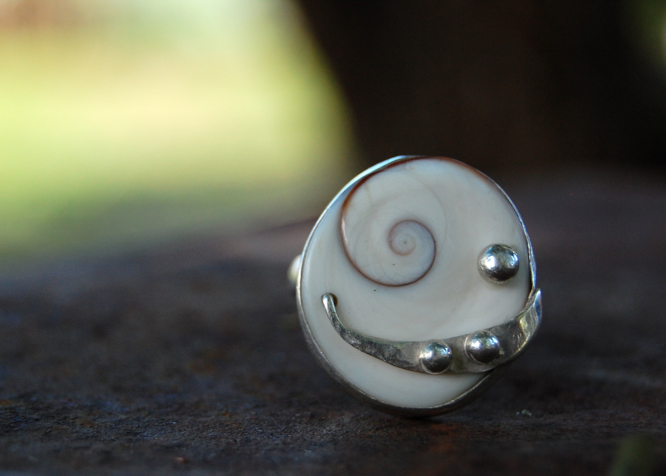 Spiral Galaxy Ring- sterling silver, sea shell, SOLD.